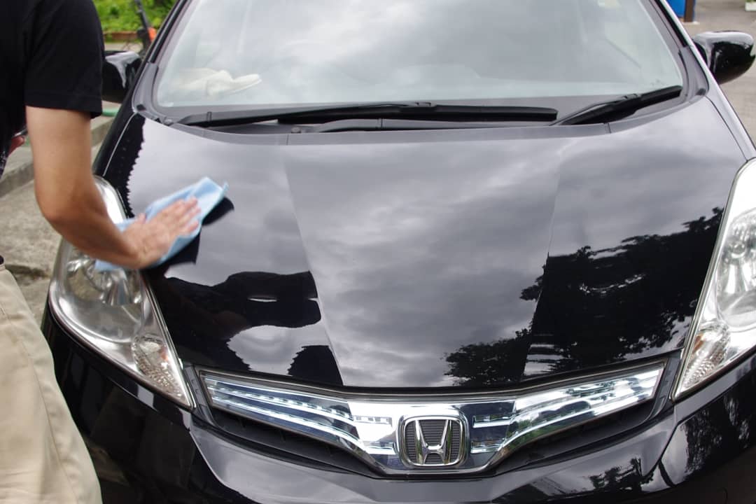 車を水洗いしてから、タオル等で水分を取り除きます。それから、
