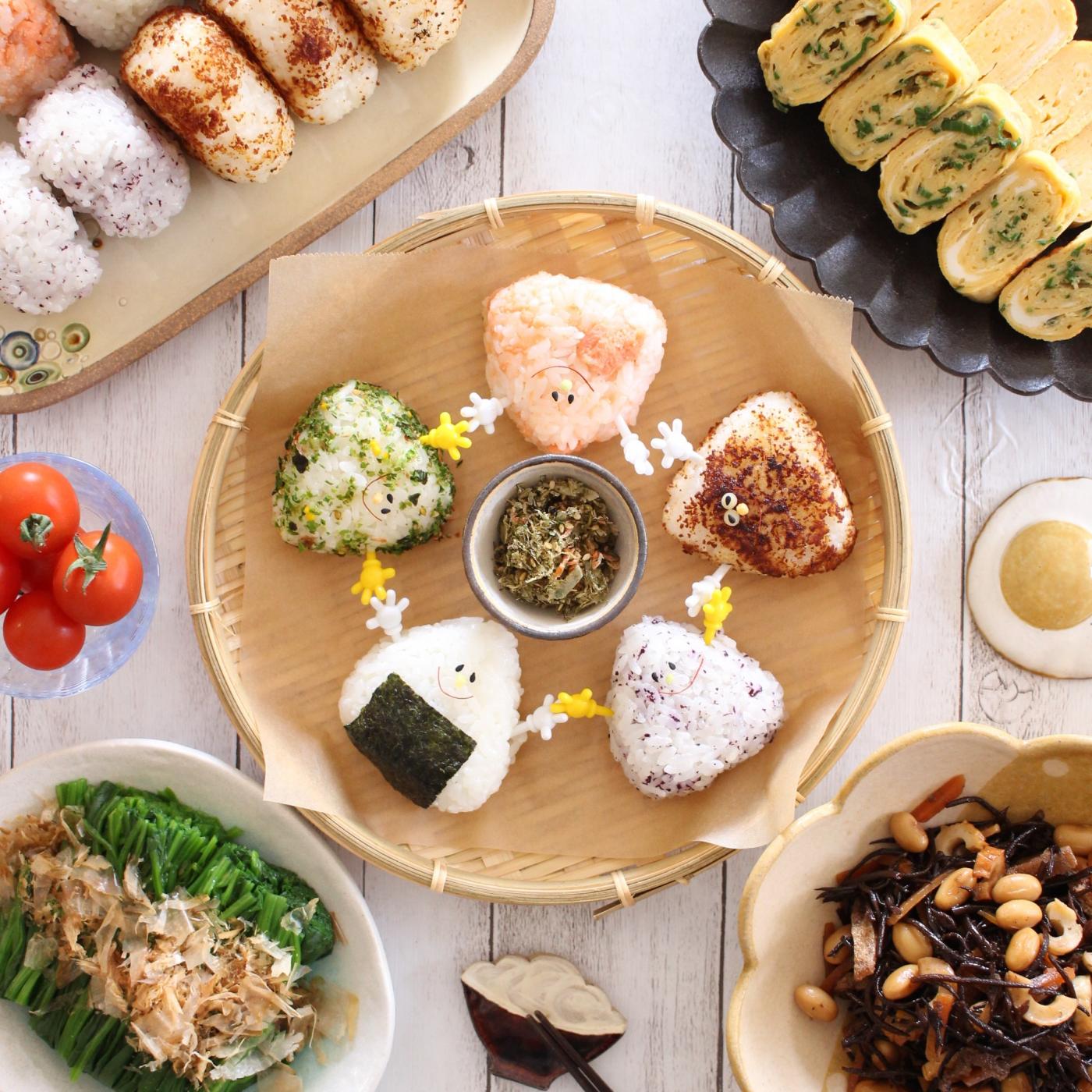 昆布入り、ゆかり、味噌焼きおにぎり、鮭たらこ、あおさふりかけ。