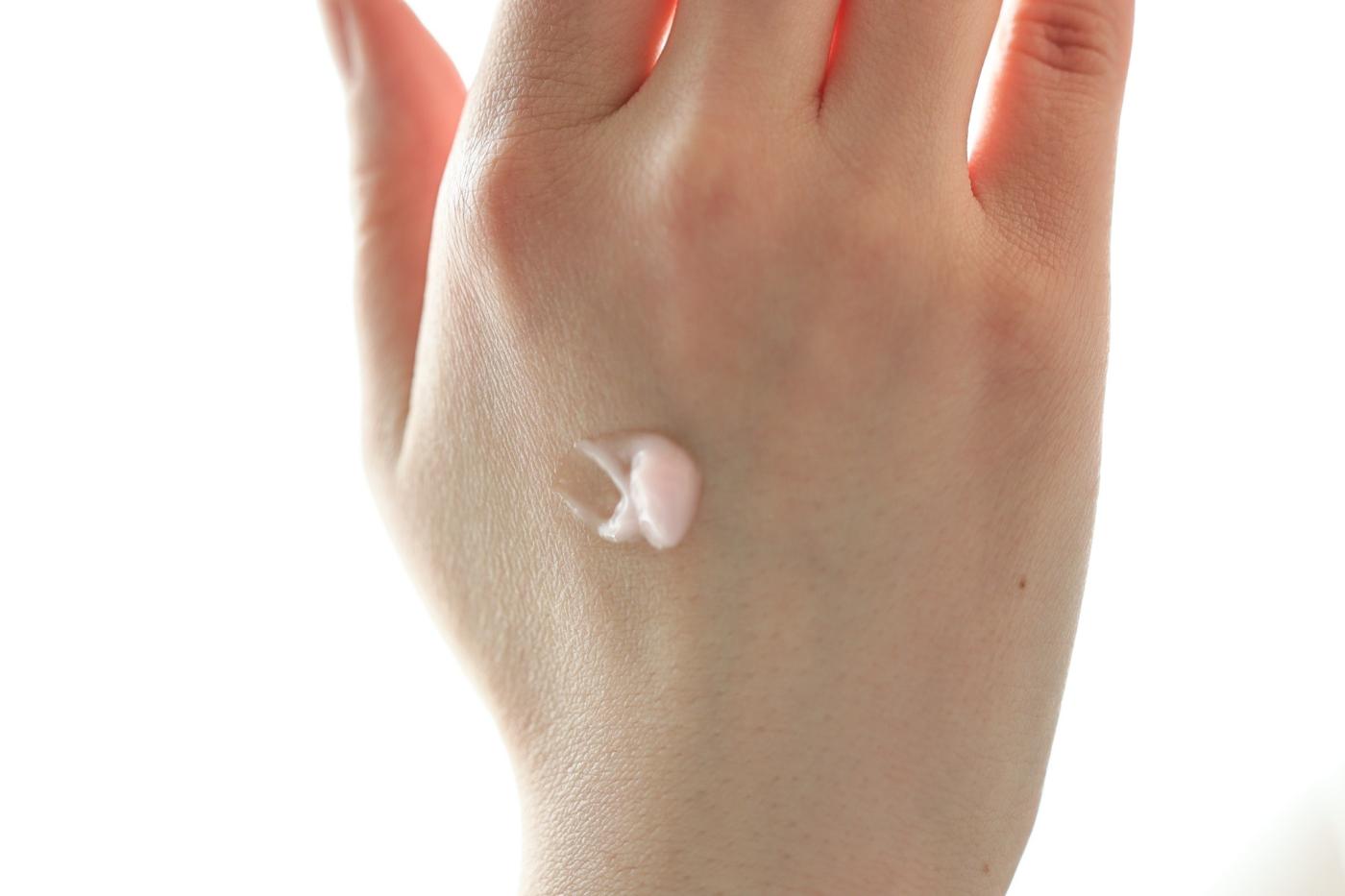 軽やかな可愛らしいピンクのクリームはなめらかに伸びて、あっという間に肌に馴染みました