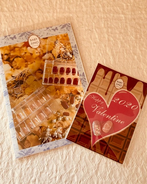 ワンタッチネイルは爪も痛めず手軽に可愛いネイルが完成するのですごく嬉しいです、たった1秒でしっかりと付け外しの出来る付け爪の元祖、BABY JUNOから普段のネイルの上からつけても楽しめるバレンタインデザインのチップは楽しく使用できました