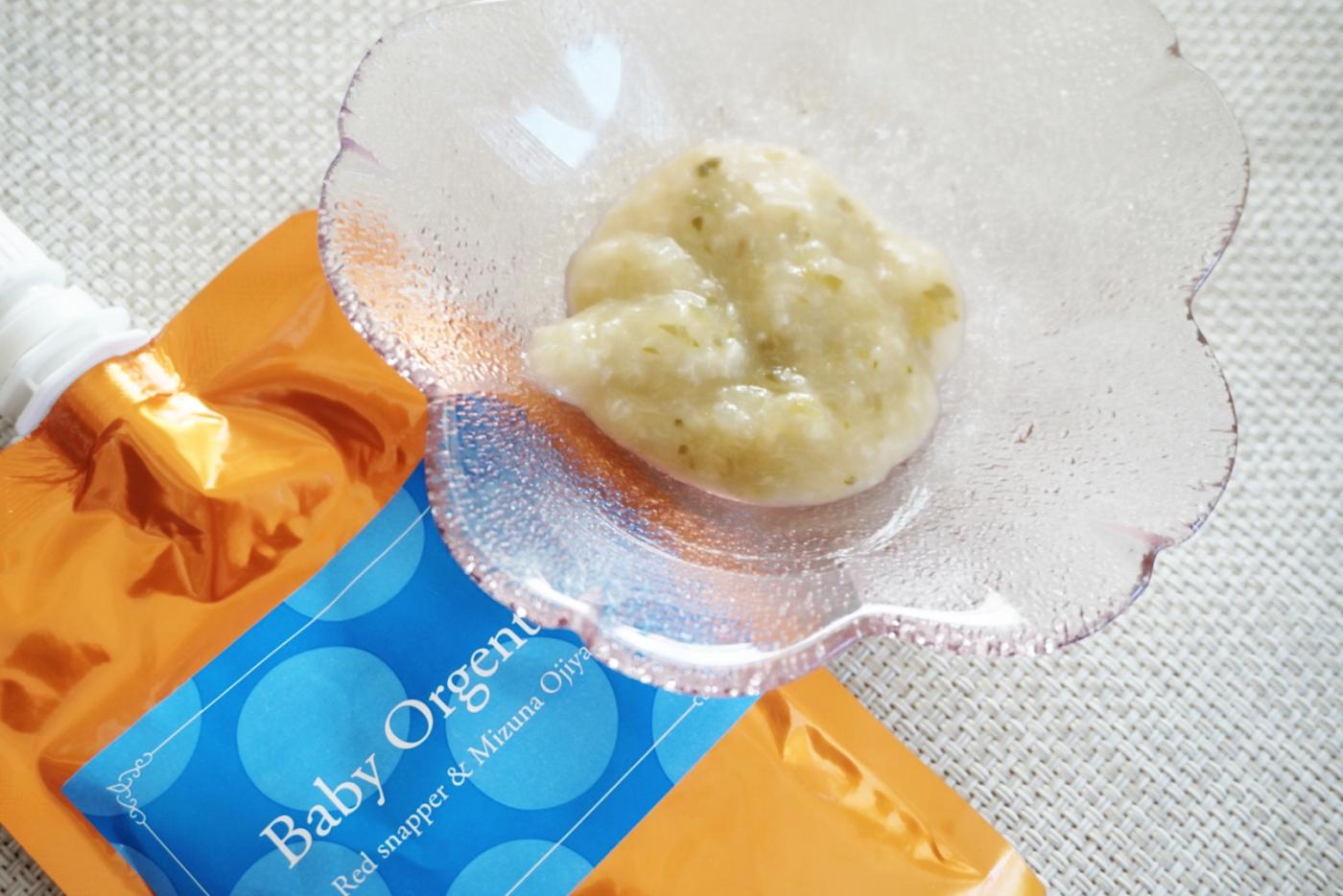 Baby Orgente鯛と水菜おじやを食べてみました。 Orgenteは3種類ありRICE PUFFでできていて小さくて丸...