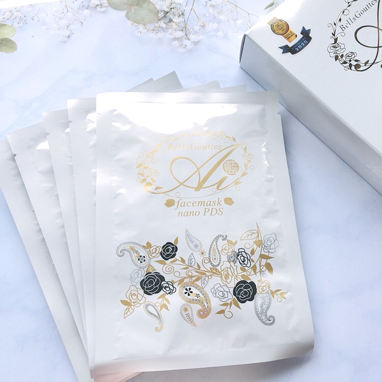 NEO BRILLIANCE株式会社様の フェイスマスク、藍Bells Gouttes (ベルズ・ゴーテ)を使わせて頂きました...