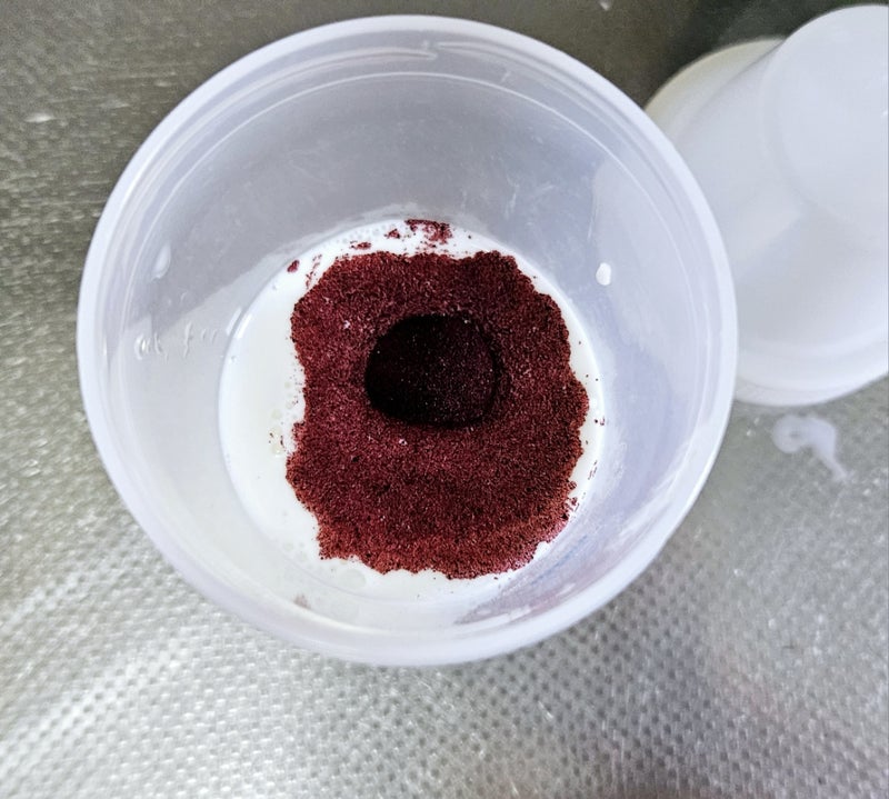 牛乳に混ぜて飲むのもよかったですが、毎日飲んでいるプロテインに混ぜてしっかりシェイクして飲むとすごく美味しくてよかったです。綺麗な紫色のドリンクになりました!これは毎日しっかり続けられそうです。