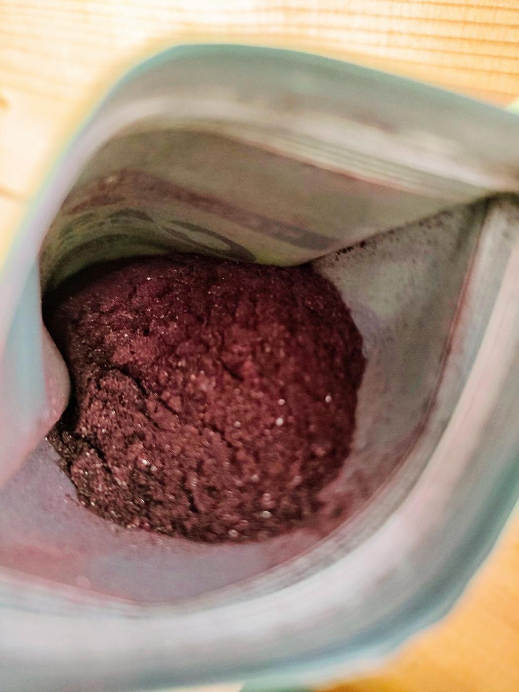 便利なチャック付きのパッケージを開けてみると、鮮やかな赤紫色のパウダー。