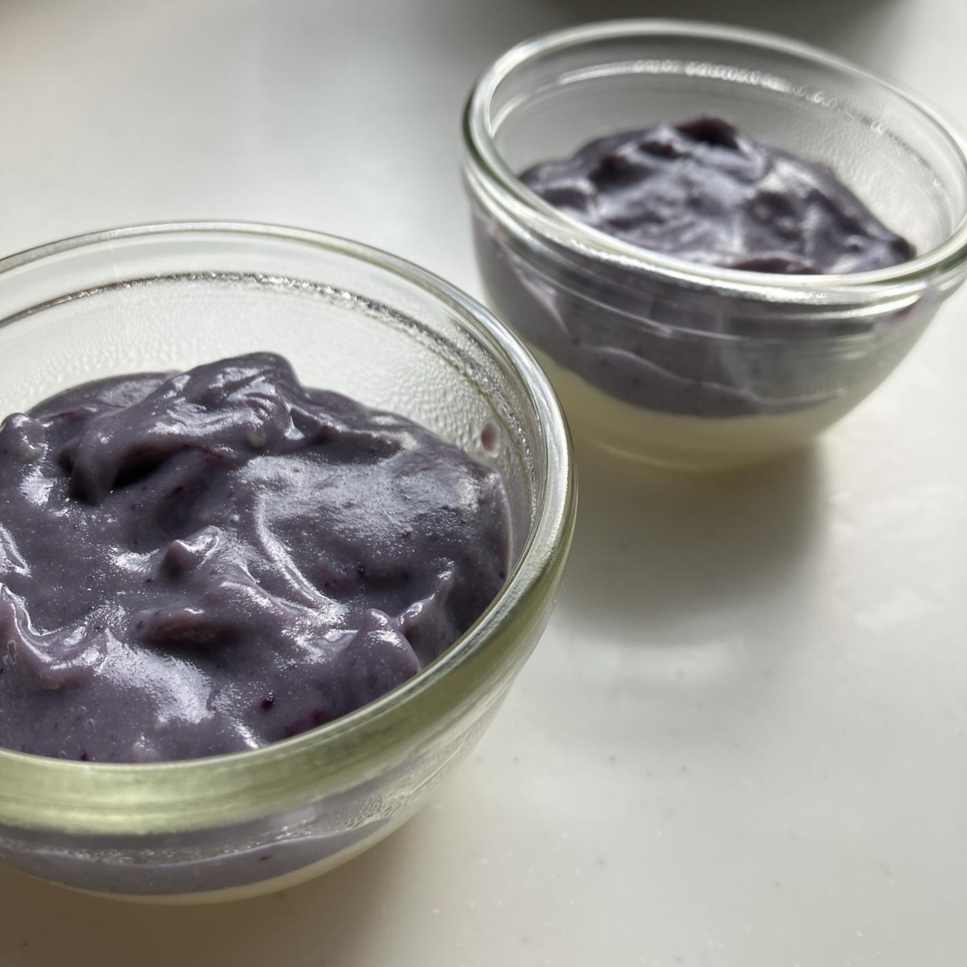 「カシス・ド・ポーテ」のカシスパウダーを使って、豆乳米粉プリンを作ってみました。まず、パウダーを混ぜたときに広がる香りがとてもさわやかで、作っている途中からちょっとワクワクしてきました。できあがったプリンの色は、思っていたよりもしっかりと紫色になり、ちょっとびっくりな仕上がりでした。ハロウィンスイーツにすると喜びそうな、濃い紫色です。