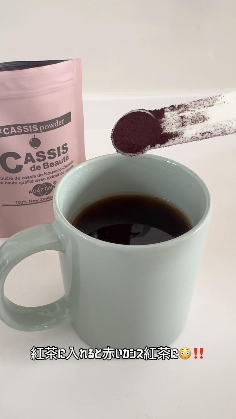 パウダーを入れた瞬間、紅茶がぱっと赤みのある色に変わってびっくり😳‼️