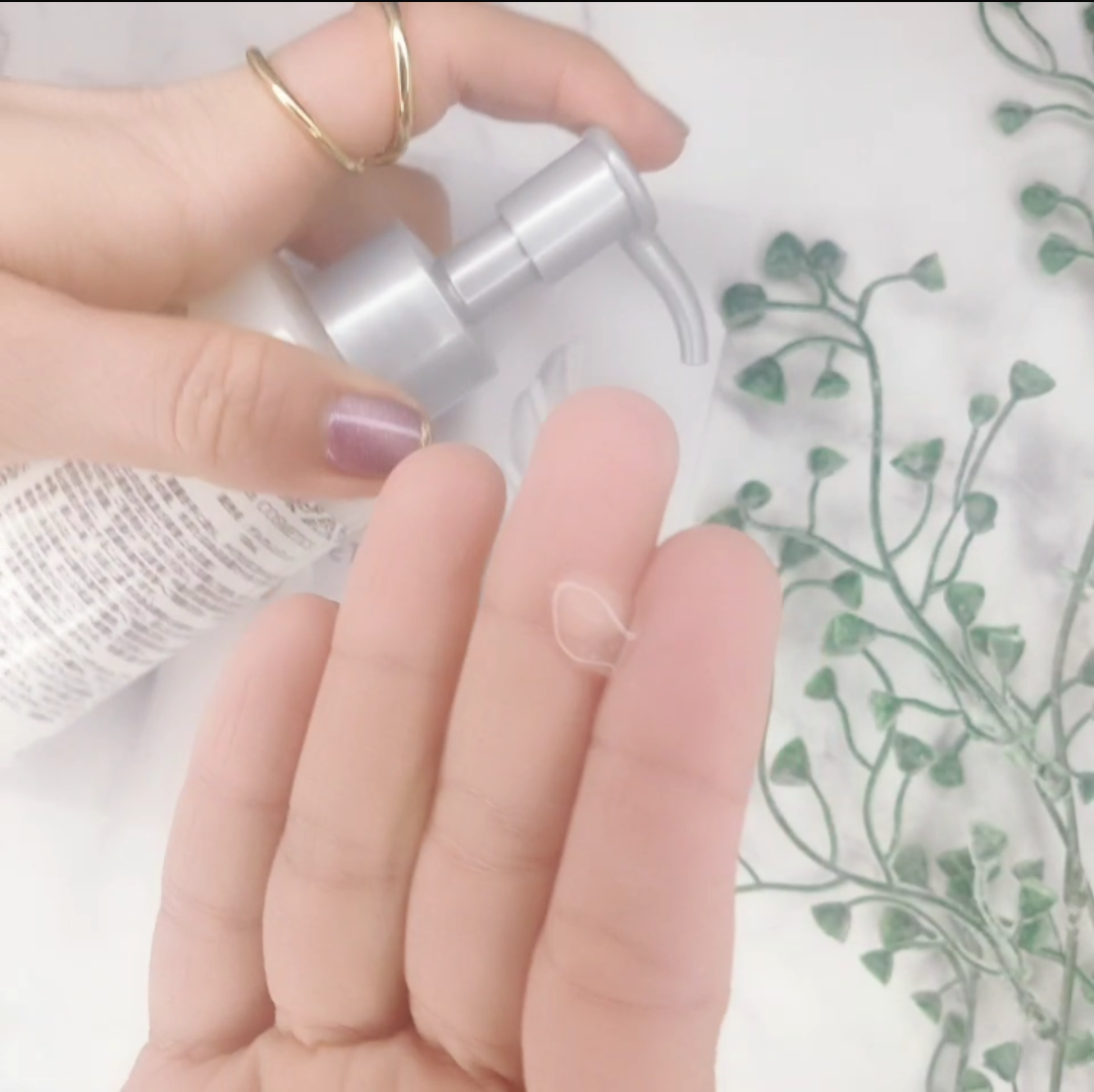メイク落とし→4~6プッシュを手にとり、指先でやさしく伸ばし、らせんを描くように良くなじませてから水またはぬるま湯でよく洗い流すだけ。