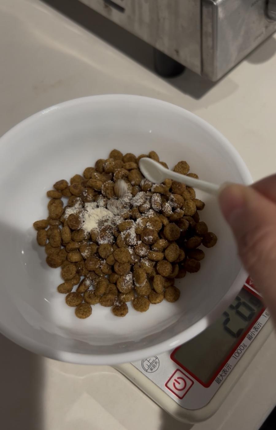 ドライフードの上にかけて、全体を混ぜて与えてみました。