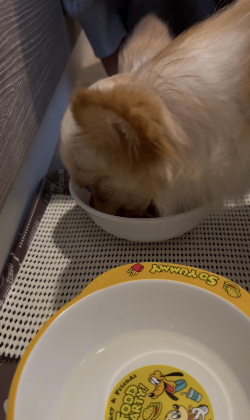 初めて与えた日は少し違和感があったのか、食べるスピードがいつもよりゆっくりでした。(いつもはがっついて一瞬で食べ終わってしまいます)