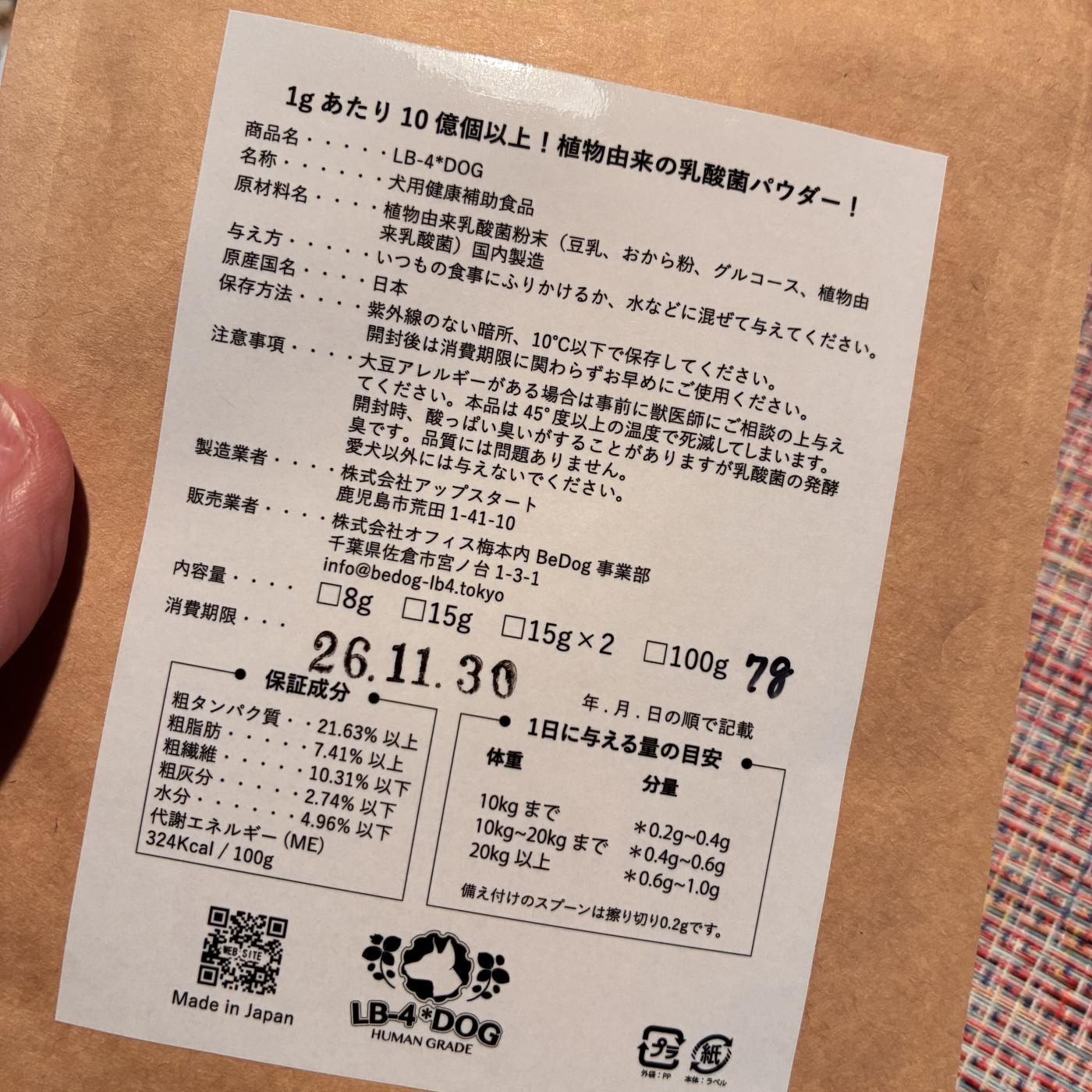 この犬用植物由来乳酸菌『LB-4*DOG』 は、