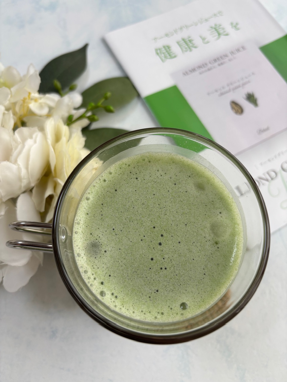 最近飲んでいる、 アーモンドグリーンジュース!   大麦若葉と6種類の野菜を使用したグリーンジュース...