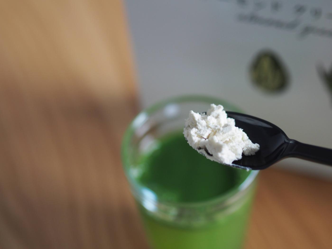 アーモンドグリーンジュースはパウダー状のアーモンドを青汁に混ぜるので摂取しやすいです◎