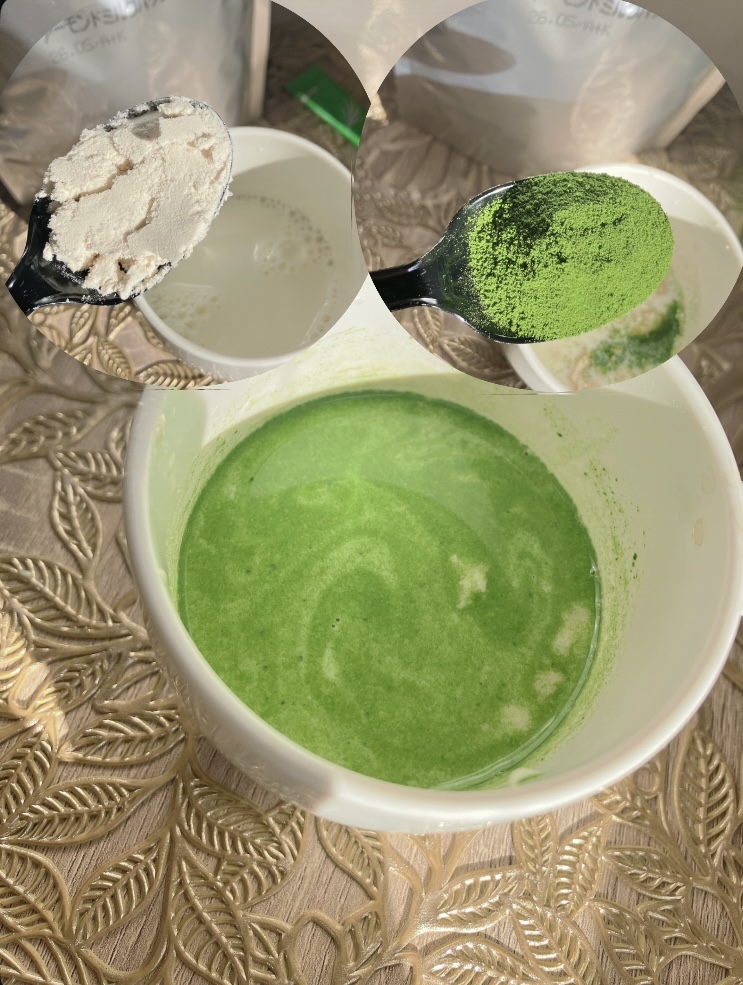 細かくてやわらかなアーモンドミルクパウダーを付属のスプーン🥄1杯と青汁スティック1本を牛乳か水(約150〜200cc)を加えてよく混ぜて飲むよ!私は甘めが好きだからオリゴ糖を少し入れて飲んでいるよ!アーモンドミルクパウダーの袋を開けた瞬間香ばしい香りがして、とてもマイルドな味で飲みやすいよ♡