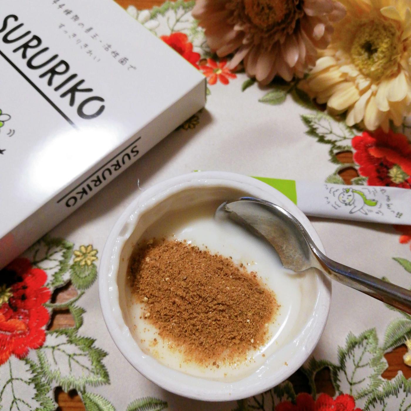 りんごヨーグルトに混ぜると、甘味もあるので、するりこの味は全く気になりません。