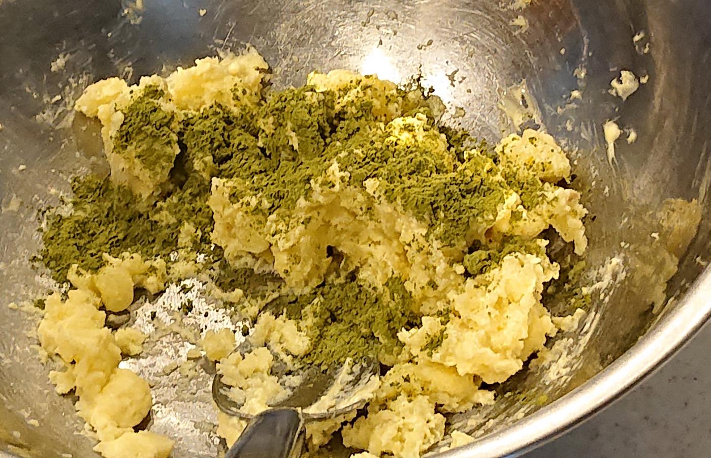 ほうれん草パウダーはクリスマスツリーに見立ててじゃがいもにまぜて作ったらかわいいしおいしく作れました!