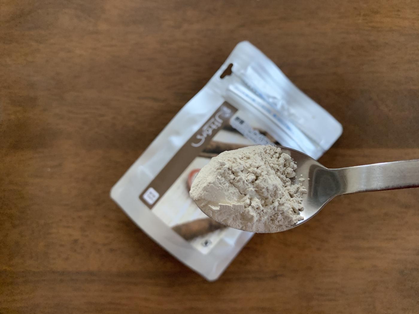 ごぼうパウダーはサラサラで、だまになりにくく、いろんな用途に使えそう。