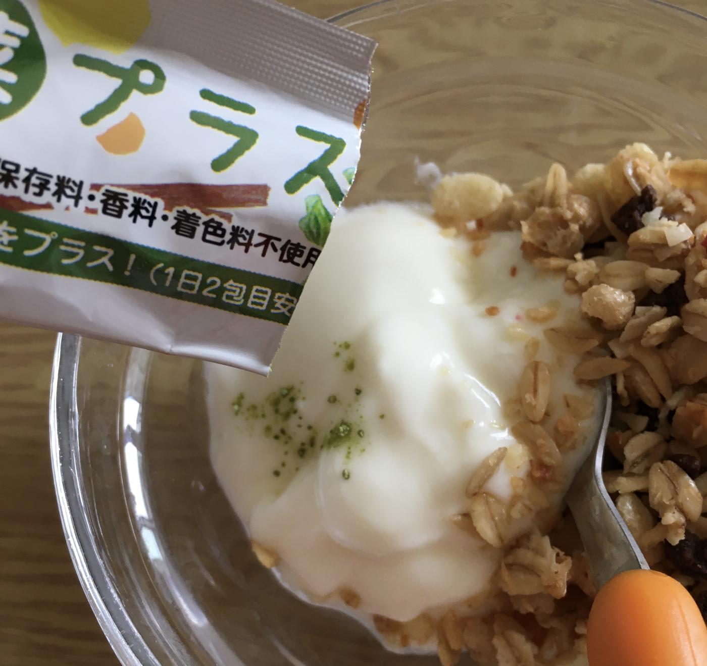 そこで、子供でも食べやすいのがヨーグルトに混ぜる事。