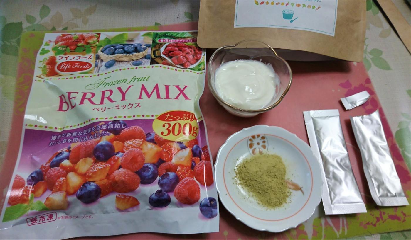 そして、もっと色を足したいなーと思ったので、ミックスベリーをトッピングしてみました。見栄えはいつも食べているのとそう変わらないです。