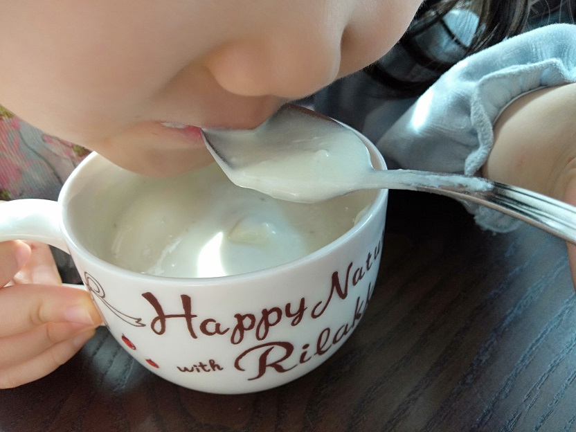うちは無糖ヨーグルトなので、娘に上げる時にはメープルシロップを混ぜています。