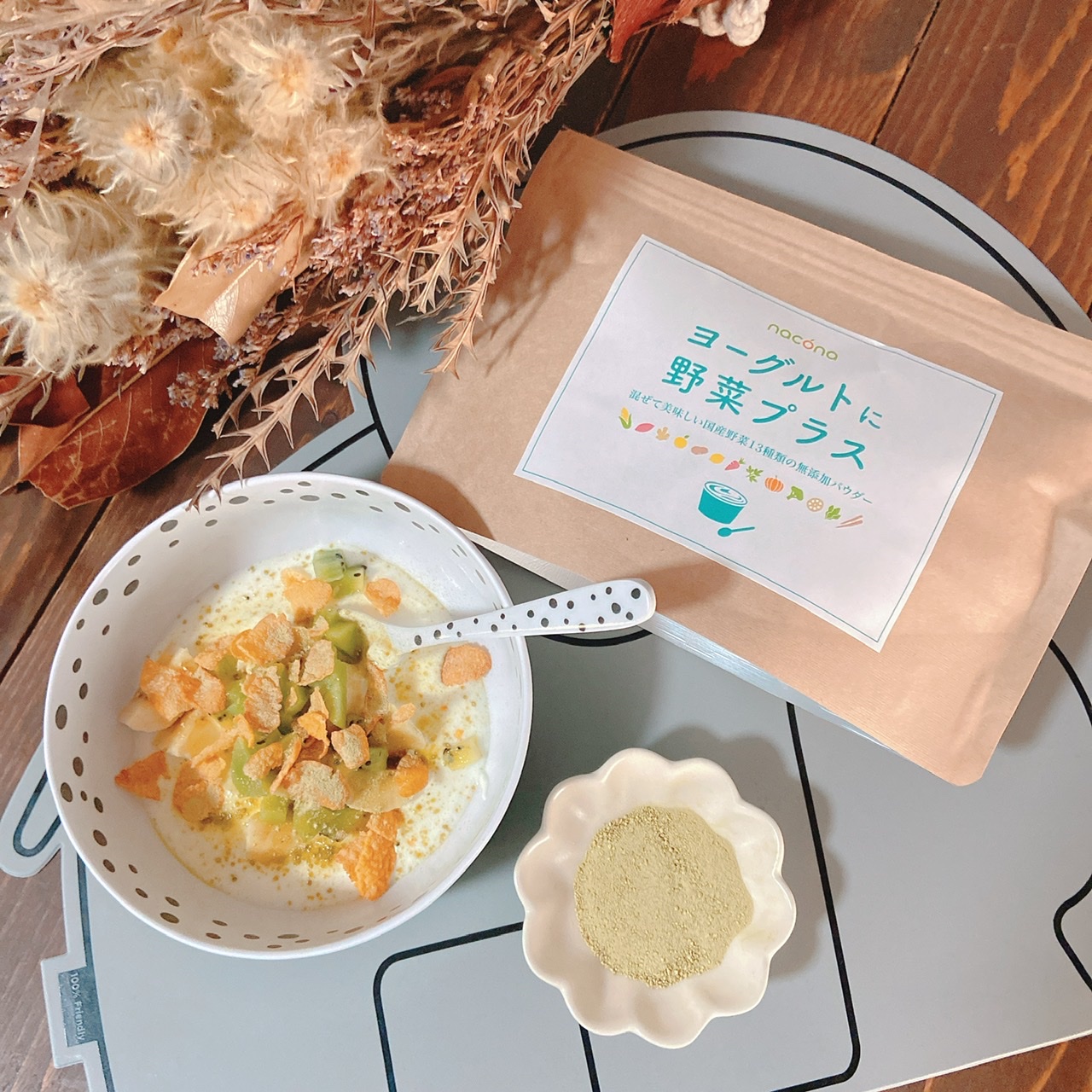 手軽に食物繊維と野菜チャージできるヨーグルト用パウダーです??