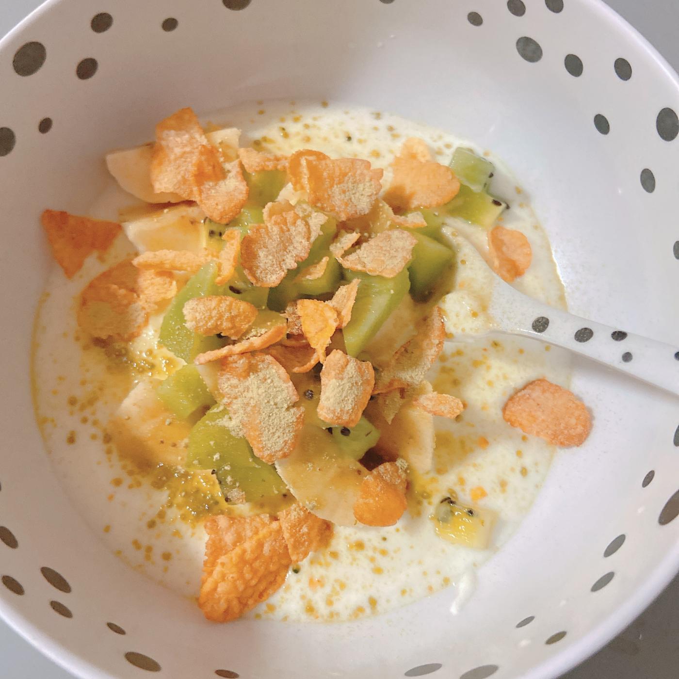 好みのヨーグルトにサッとかけて混ぜるだけで、