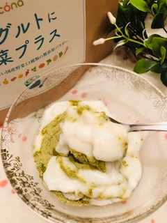 みかさの国産野菜パウダー ヨーグルトに野菜プラスをお試しさせていただきました♪  ヨーグルトに野...
