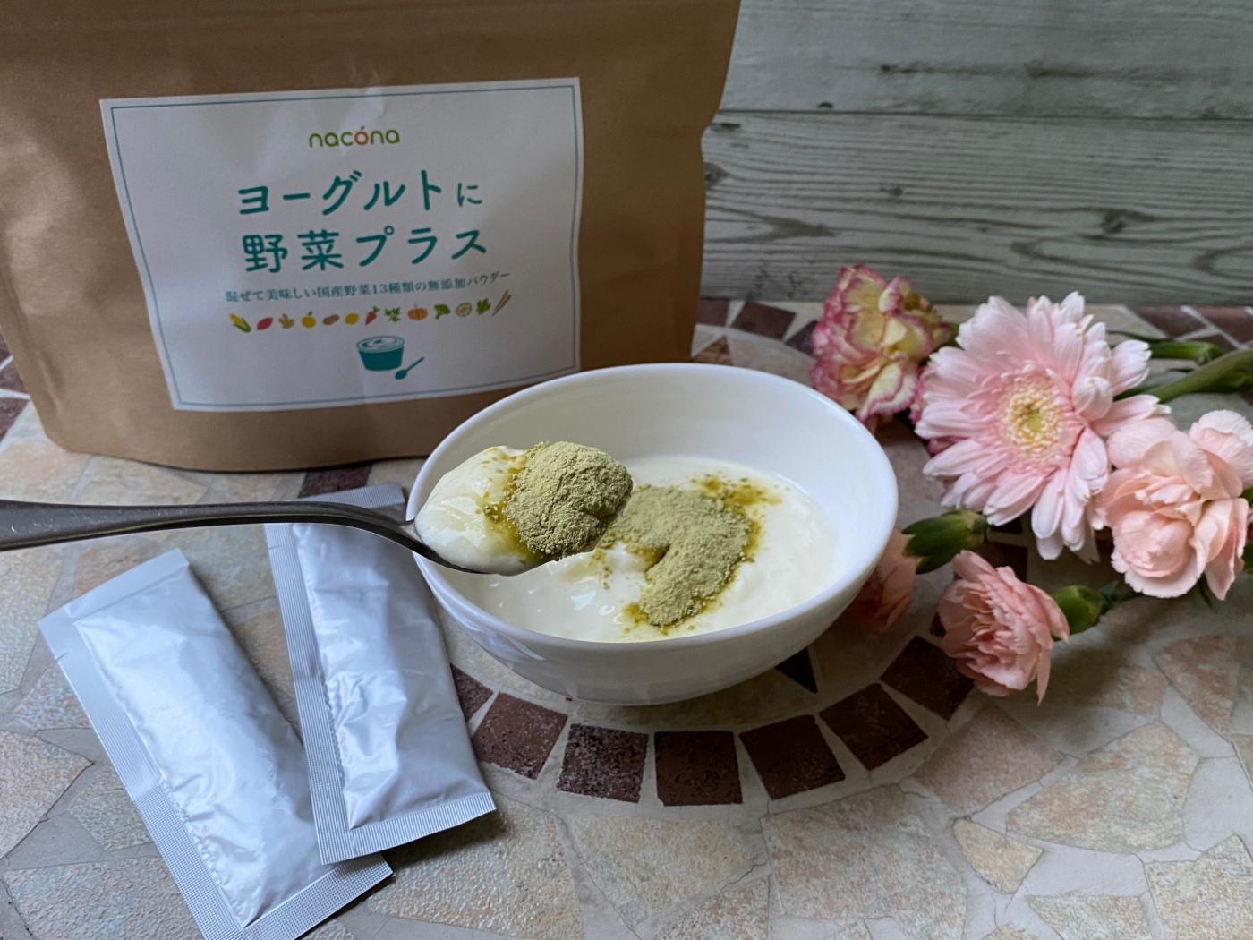 naconaのヨーグルトに野菜プラスを使用させていただきました