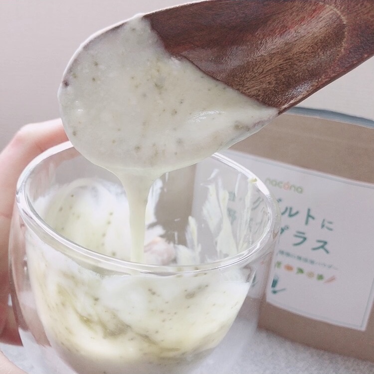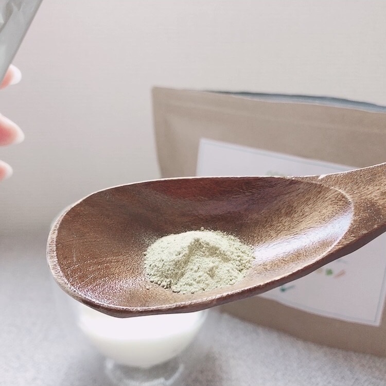 みどり色のパウダーで、ほんのりごぼうのような風味がしますが、私はいつもヨーグルトにはハチミツも入れているので全く気になりませんでした✨