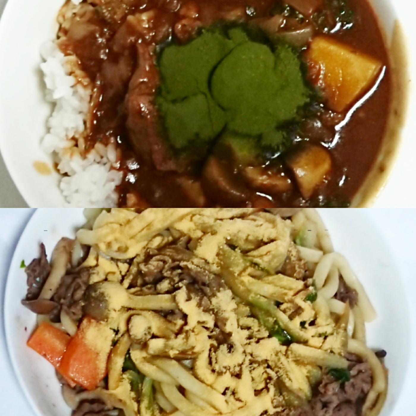焼うどんににんじんパウダーは、焼うどんに甘みが少し加わり、とてもおいしかったです。味はしょうゆベースです。