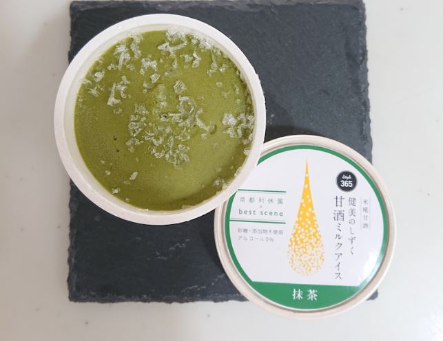 甘酒が苦手な方もいるかと思いますが、このアイスは濃厚なおいしい抹茶が入っているせいか、くせを感じません。