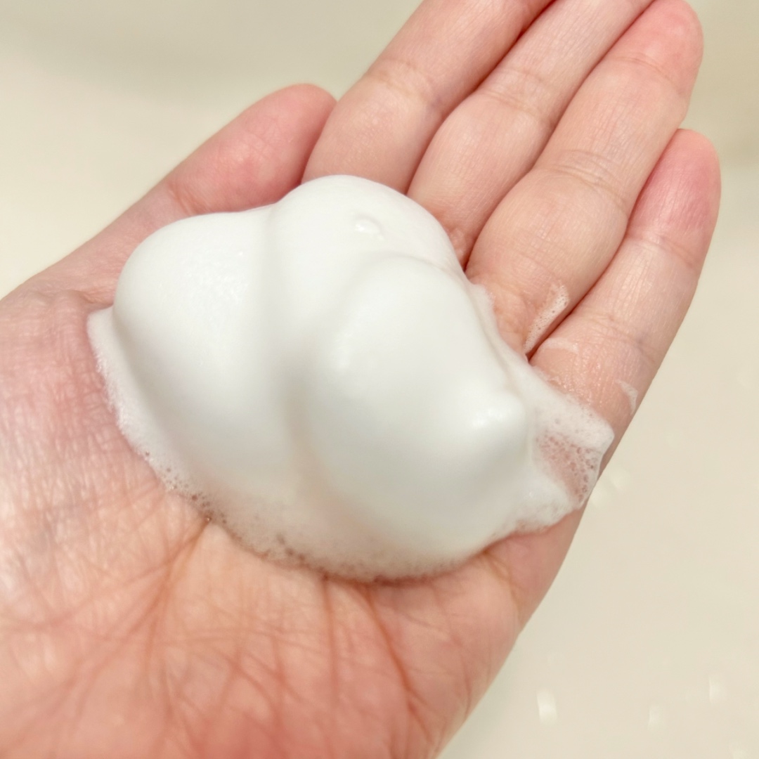とてもきめ細かい泡で、軽く肌を滑らしメイクになじませます。
