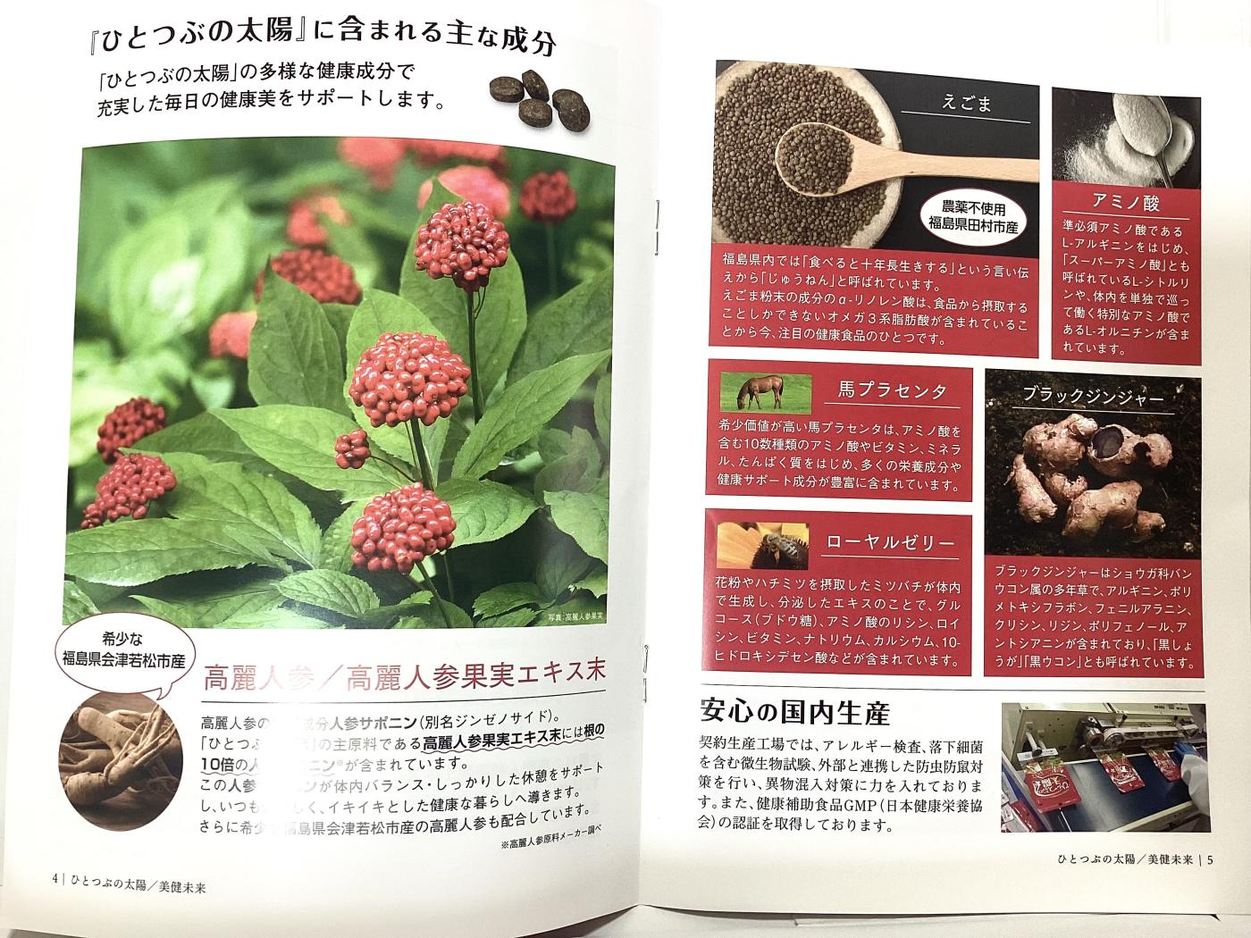 高麗人参というと、韓国や中国産のもので根の部分を使っているものというイメージがあったのですが、ひとつぶの太陽には福島県会津若松市産の高麗人参末に加え、中国製造の高麗人参果実エキス末も配合されているそうで、高麗人参果実の部分も使われてる高麗人参のサプリは個人的にはあまり見たことがないかも?と思い、ひとつぶの太陽が気になった私。