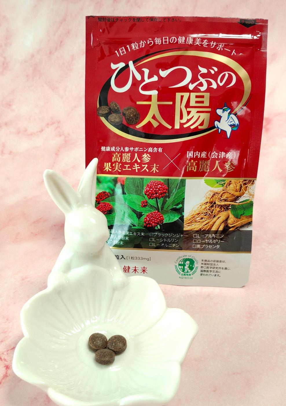 以前、他メーカーの高麗人参サプリを試した際、「くさい」「苦い」「何これ?」と、酷評していた夫も、ひとつぶの太陽は飲みやすかったとのこと✨