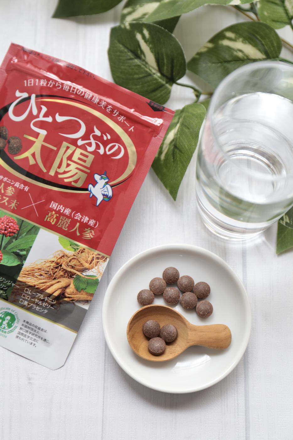 「ひとつぶの太陽」には希少な福島県会津若松市産の高麗人参も配合されており、安心の国内生産なのも嬉しいポイント💡