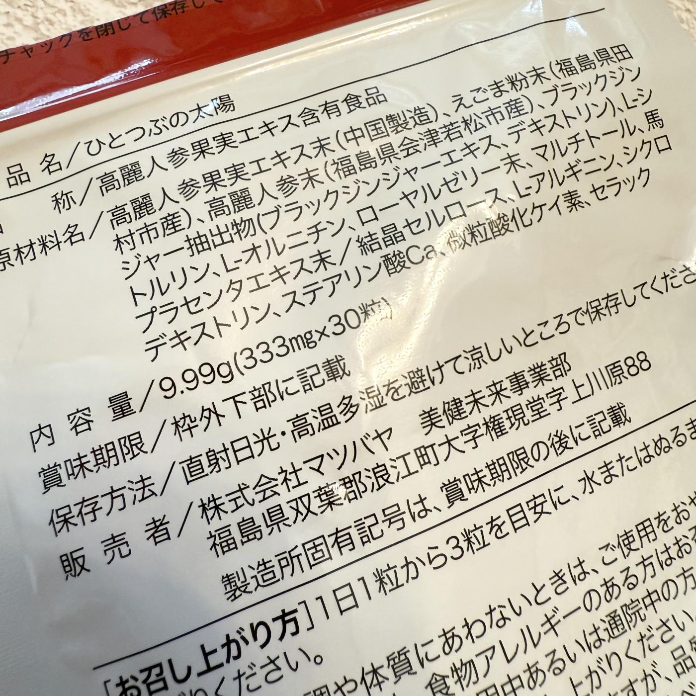 コエタスのモニターキャンペーンでもらった「【高麗人参サプリ】ひとつぶの太陽」についてのレビューで...
