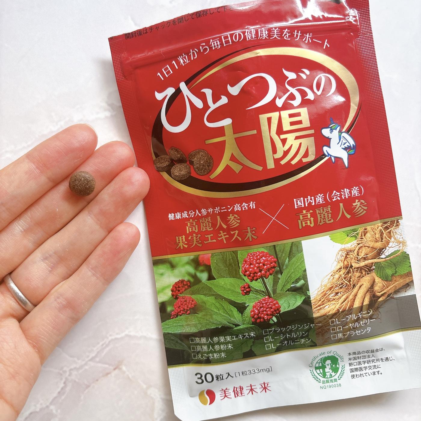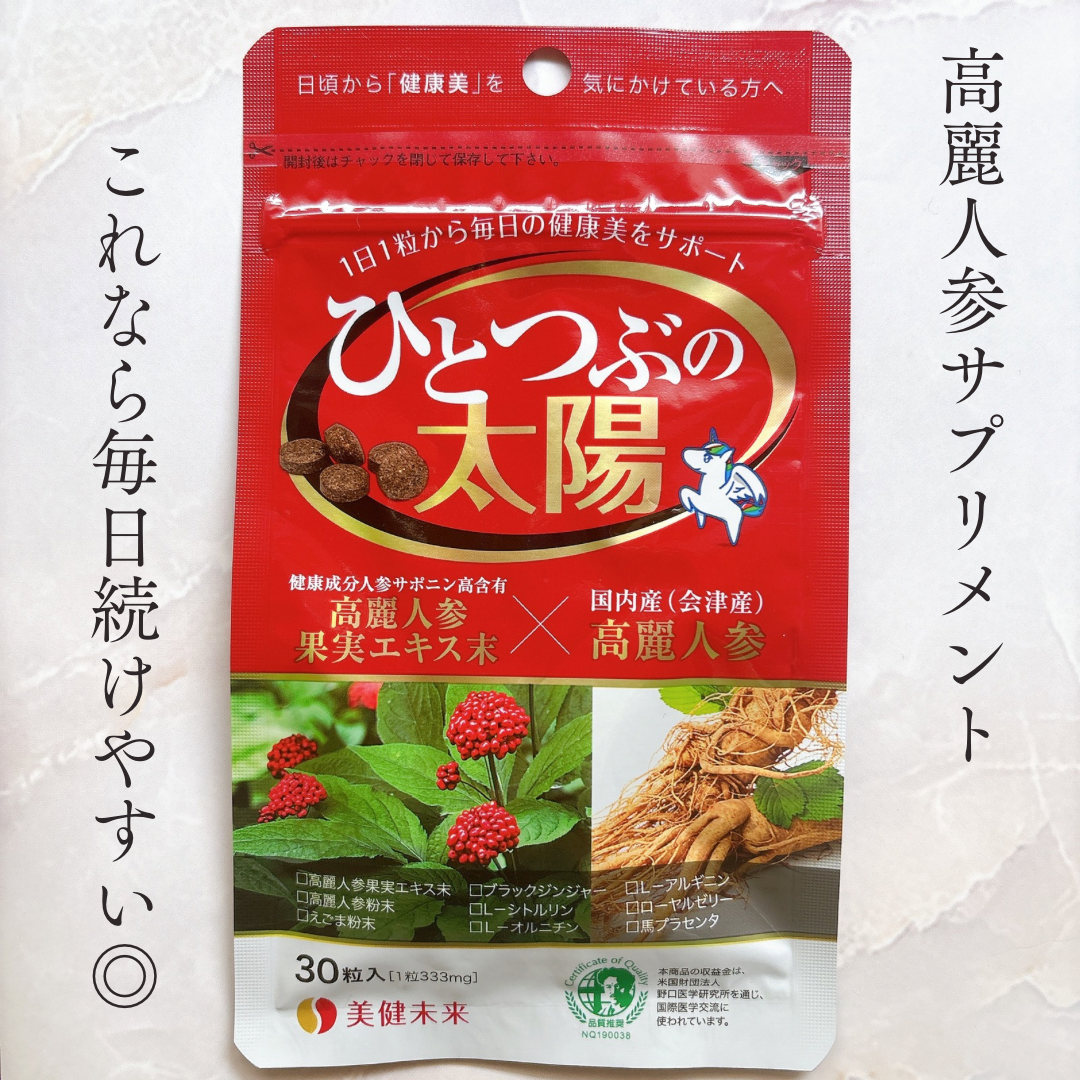 コエタスのモニターキャンペーンでもらった「【高麗人参サプリ】ひとつぶの太陽」についてのレビューで...