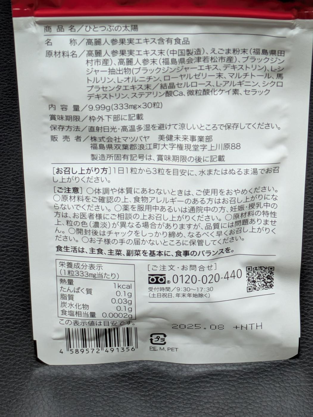ひとつぶの太陽はあくまで健康食品!