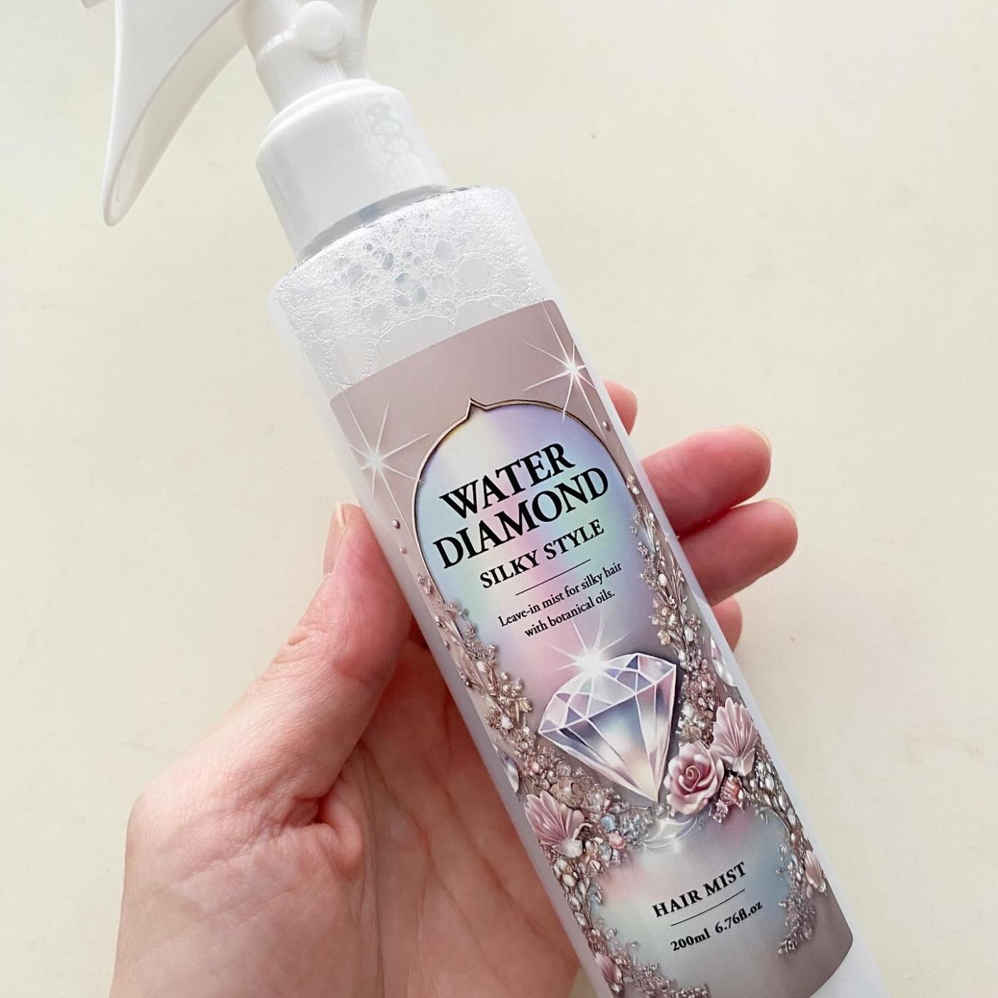 お風呂上がり、タオルドライした髪に「ウォーターダイヤモンド シルキースタイル」をシュッシュとスプレ...