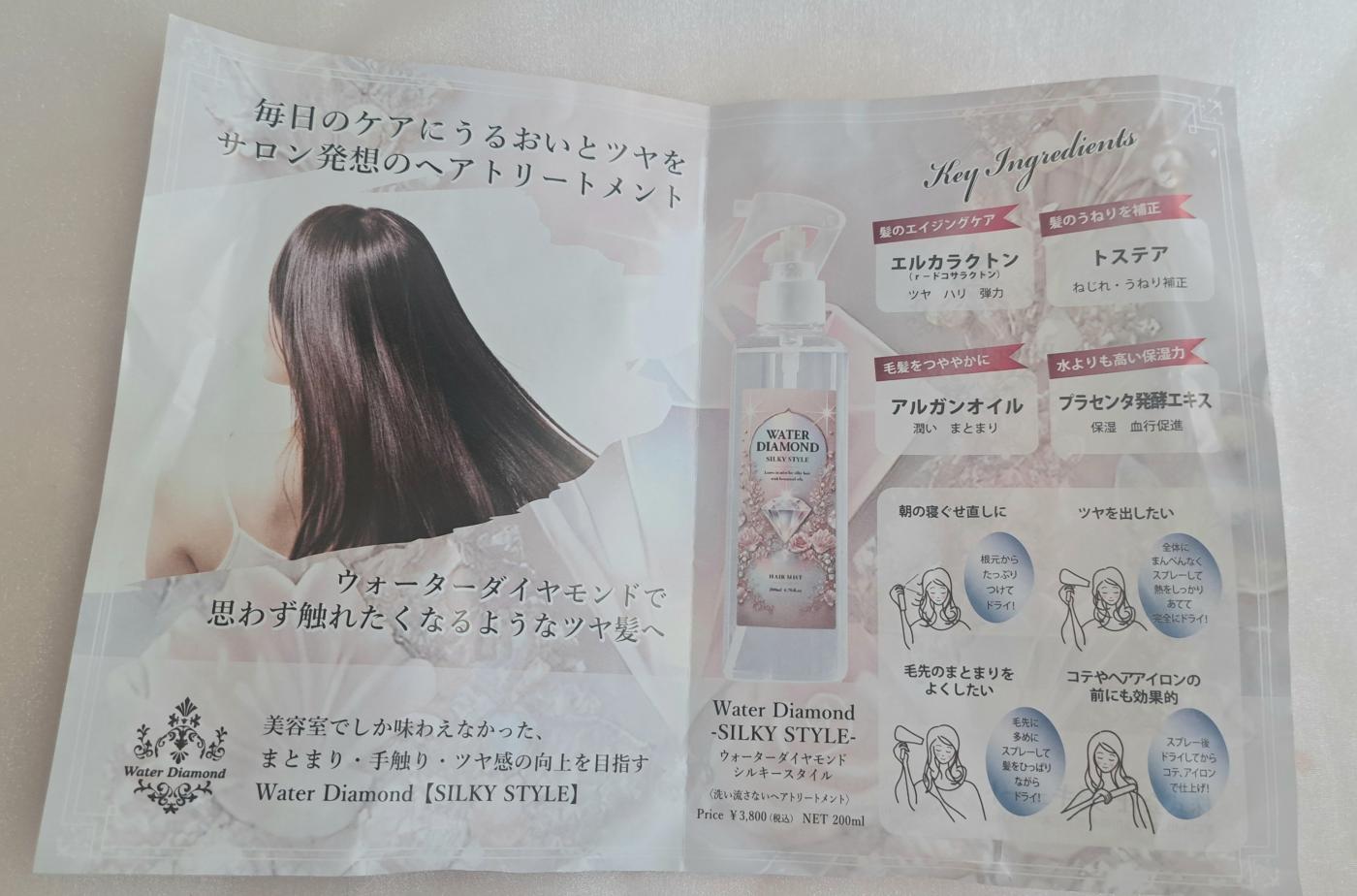 『ウォーターダイヤモンド シルキースタイル』 美容院おわりのサラツヤ髪にしてくれる洗い流さないトリ...