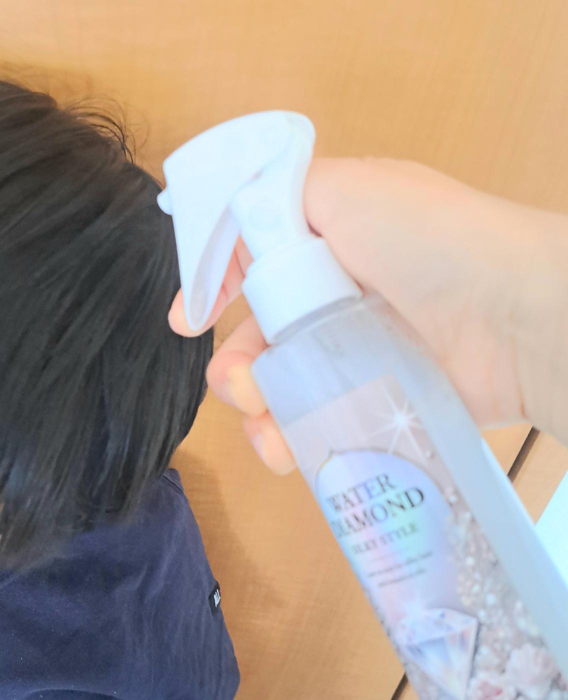 シャンプー後のタオルドライした髪に使う、スプレータイプのスタイリングウォーターを取り入れてみました。