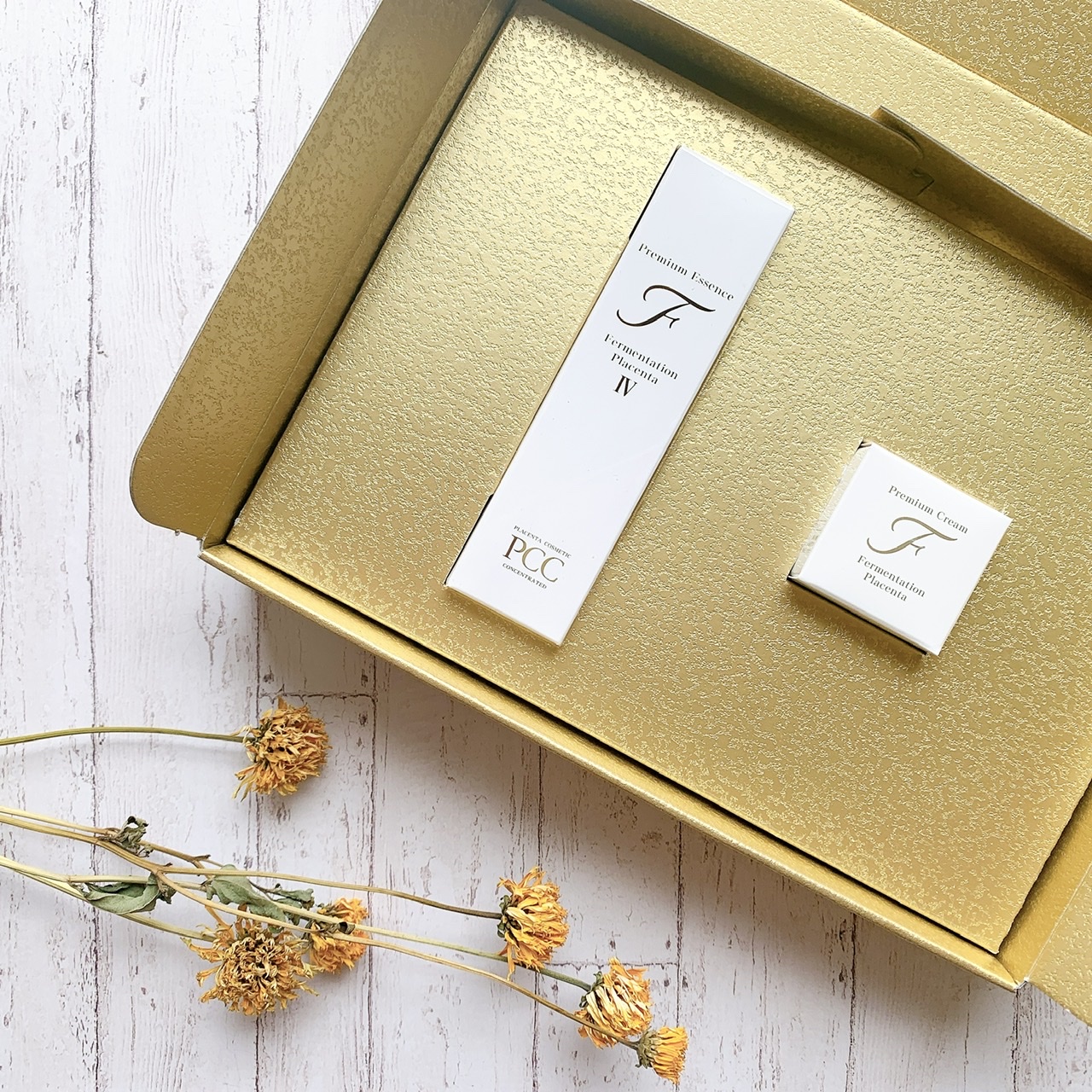GOLDの箱に入ったPCCプレミアムエッセンスF IV。 開けた瞬間からテンションがあがる高級感⋆.* ☑︎発...