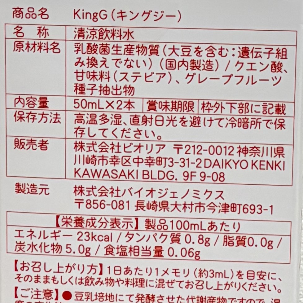 KingGは、株式会社ビオリアが開発した乳酸菌生産物質を主成分とするリキッドタイプのサプリメントです🤗
