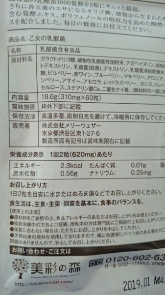 乙女の乳酸菌は腸内環境を整えてくれるサプリメントです。
