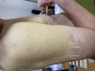 うちのタトゥーは範囲が大きかったのでムラができてしまいましたが、ワンポイントなどもう少し範囲が狭いタトゥーだとより良い感じで隠れるかなと思いました。