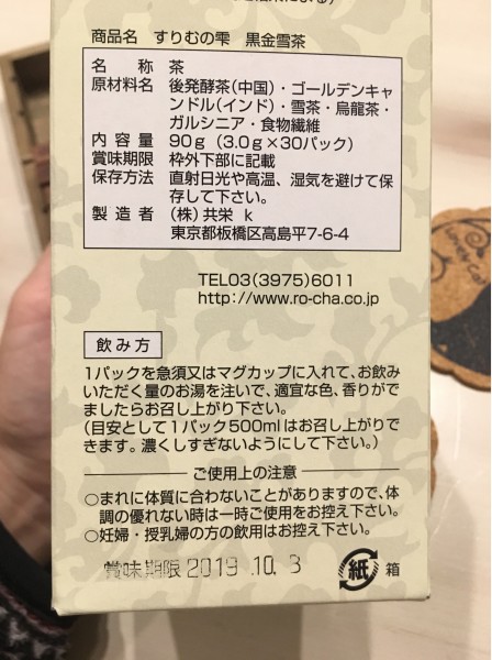まず一つ目が烏龍茶。油っこい中華のお供として有名です。二つ目が雪茶。初めて聞いたのですが、この雪茶はエベレストのふもと、3500m以上にしか生息せず、栽培も不可能、そして年に数ミリしか成長しない大変希少価値の高いお茶だそう。三つ目が黒茶。油っこい食事のお供として烏龍茶と並び有名ですね。四つ目がゴールデンキャンドル。便秘気味の方やダイエット茶に敏感な方にはすぐピンとくる、漢方としても使われるスッキリ効果のある植物。これが含まれているため、飲み過ぎ注意です。五つ目がガルシニア。炭水化物や甘いものと相性が良く、ダイエットに最適です。六つ目が食物繊維。食物繊維は便秘解消の必須アイテムです。あんまりのみすぎないように、とのことだったので、1パックを2倍の1リットルのお湯でにだして飲みました。即効性はありませんが、お通じがスッキリ気持ち良いリズムに整いました。味は至って普通のお茶です!烏龍茶感が強いかな?こころなし胃もたれもなくなった気がします。効き目が強いそうなので、あまりいきなり大量に飲むと大変なことになりそうです。飲まれる方は気を付けて!これからも続けていきます!