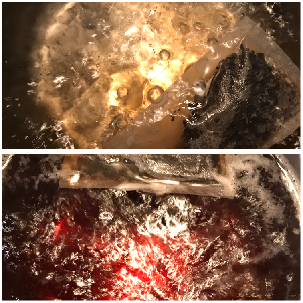 1パックを1.5~2ℓのお湯で3~5分煮出すとのこと。我が家のやかんは1ℓ用でしたのでお鍋を使用しました。