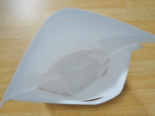 外側はつるつるしたビニール素材、内側は不織布のような素材になっていて、