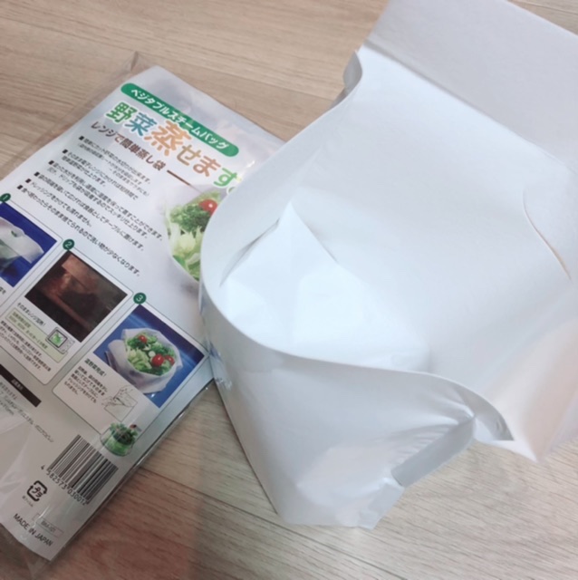 「野菜蒸せますよ」、届きました! これ、その名の通りベジタブルスチームバッグです。 電子レンジでお...