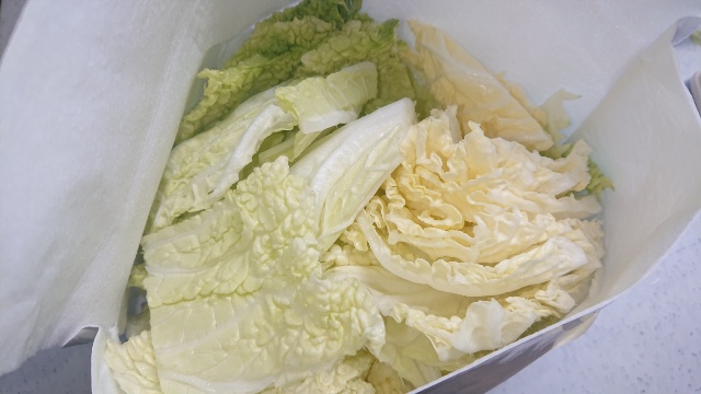 次回、白菜は1/8束かな。袋半分まで入れるくらいが程よかったかと思われます。