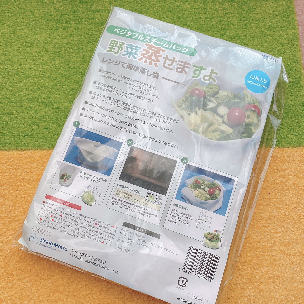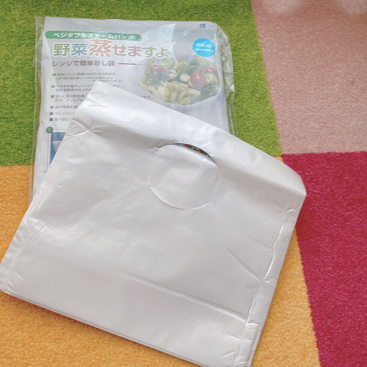 レンジでチンするだけで簡単に野菜が蒸せちゃう袋状の時短アイテムです。